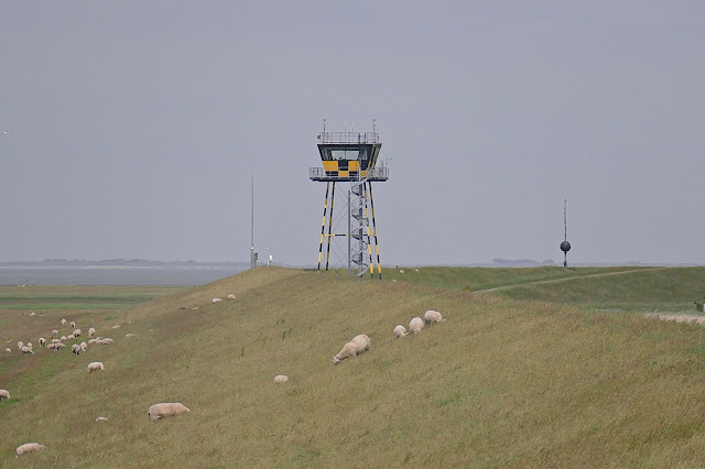 Einen Blick über den Deich wollten wir dann doch noch riskieren. Ein Hinweisschild warnte davor, dass man bei Benutzung eines Fernglases Augenschäden erlangen könne!?